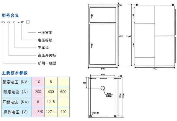 KYGC-12礦用一般型高壓真空開關柜,主要用于沼氣礦井的井底車場,總通風道或主要進風巷道,機電峒室的供配電系統中。作為三相交流50Hz電壓至6Kv或10Kv電器設備的保護和控制設備。可作為直接起動或經電抗器啟動主排水泵電機,是煤礦井下理想的供配電設備。并同樣能動用于地面工礦企業的供配電系統。